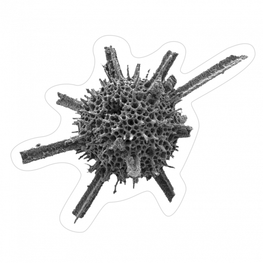 I radiolari sono organismi unicellulari tra i principali componenti del plancton marino, diffusi negli oceani dall’equatore ai poli. Grandi solo pochi decimi di millimetro, hanno uno scheletro di silice trasparente, un vero e proprio fragile vetro, conformato in bizzarre architetture. Alla loro morte, i resti si accumulano sui fondali, ammantandoli di una sottile fanghiglia formata dai microscopici scheletri in grado di fossilizzare. In alcuni periodi della storia della Terra, gli accumuli di questi microfossili furono talmente abbondanti da costituire da soli spessi strati di rocce sedimentarie che da loro prendono il nome. È il caso delle Radiolariti del Parco delle Gole della Breggia, spesse oltre 50 metri e risalenti a 160 milioni di anni fa. Ancor più antichi (240 milioni di anni fa) i radiolari scoperti nel 2012 nelle rocce triassiche del Monte San Giorgio: 73 specie fossili, alcune appartenenti a generi nuovi come Ticinosphaera.